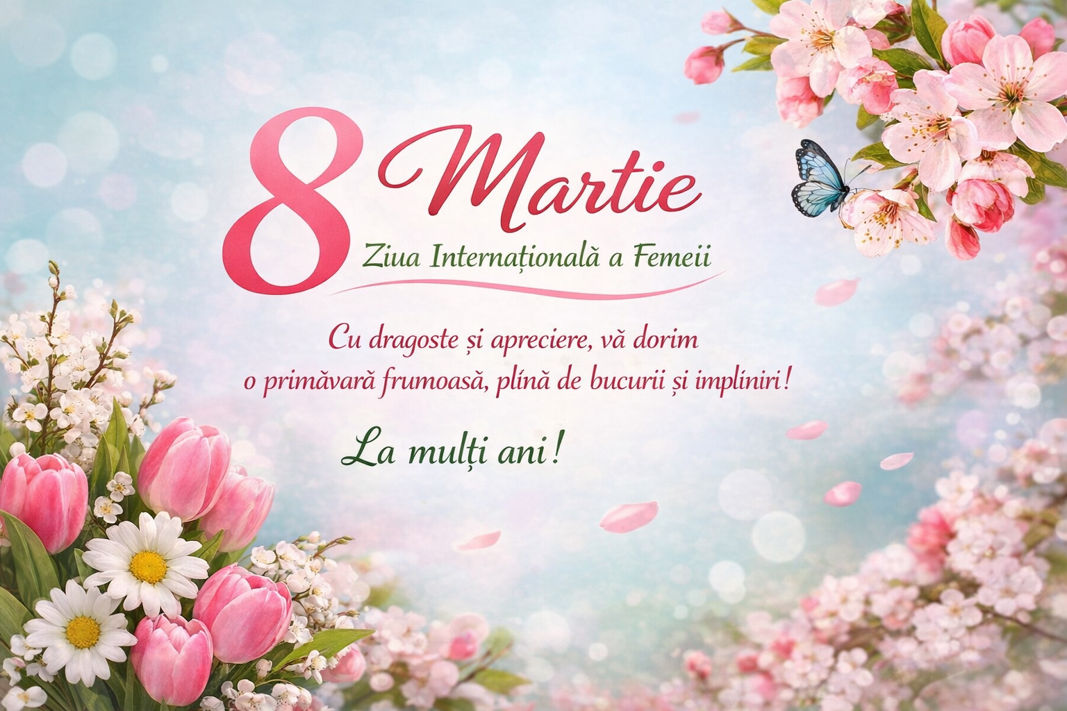Vă dorim multă sănătate, armonie, inspirație și împliniri, atât în viața personală, cât și în activitatea profesională. Fie ca această frumoasă zi de primăvară să vă aducă apreciere, recunoștință și numeroase momente de bucurie alături de cei dragi.